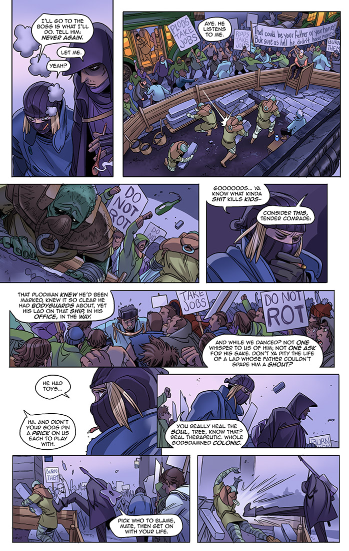 "...'PLODS TAKE JOBS' say the slashes of white board wielded by the jealous horde and I reply: Piffle. If a recycled labourer can do your job, bricklayer, then the quality of your eye and the industriousness of your heart fall under scrutiny. Yet you horking pigs will not scrutinize. You will not endeavour to polish your skills and improve your lot through honest means, and instead block the bridge today demanding the government ban these insurgent recycled labourers, then restore your plush appointments. Piffle! One suspects these “protestors” foreign paid agitators; Aldishmen would never debase themselves with this disorderly squealing."
